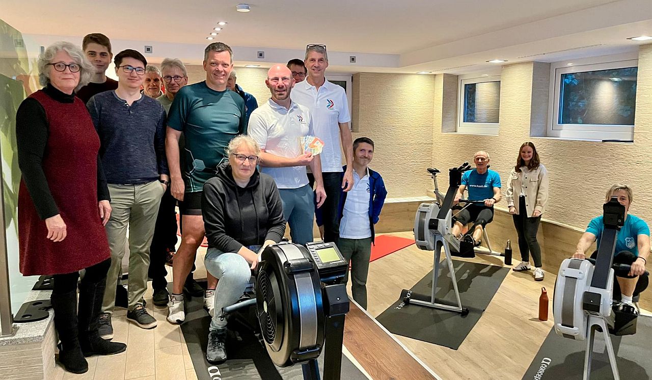 Bereits zum dritten Mal haben sich Ergometer Ruderinnen und Ruderer für einen guten Zweck ins Zeug gelegt. Alljährlich stellt Vereinskassier Christian Amrhein dafür den Fitnessbereich des Hotels Fuchsbräu zur Verfügung und betreut die Sportler mit seinem Trainer Fachwissen zum Thema Ergometer Rudern.